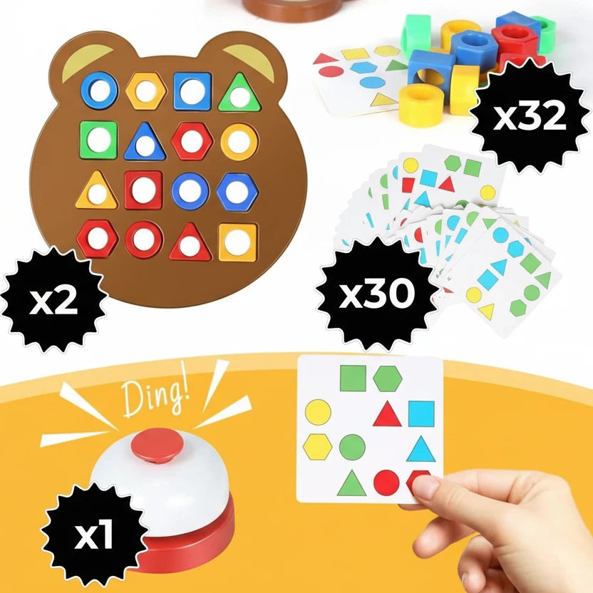 Elke ronde begint met het trekken van een opdrachtkaart. Zodra iedereen de kaart heeft gezien, wordt het startmoment afgesproken en begint het spel. Plaats zo snel mogelijk de juiste vormen en kleuren op het eigen berenbord. Wie als eerste klaar is en op de bel drukt, wint de ronde. Eenvoudig, spannend en ideaal om samen te spelen.