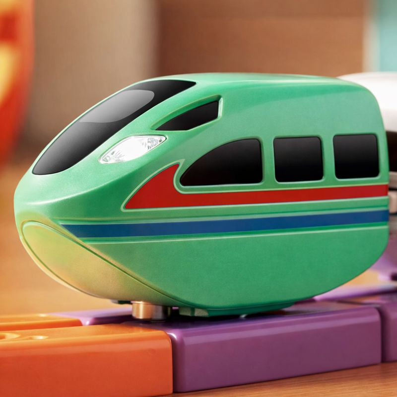 Kinderen bouwen zelfstandig of samen een treinbaan door magnetische rails en onderdelen met elkaar te verbinden. Door te experimenteren met bochten, routes en verbindingen leren zij logisch nadenken, plannen en problemen oplossen. De trein kan vervolgens over de zelfgebouwde baan rijden, wat het spel extra interactief maakt.